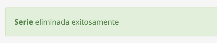 En la parte superior, aparecerá un recuadro verde notificando que la serie ha sido eliminada exitosamente y se borrará de la lista de series y folios.